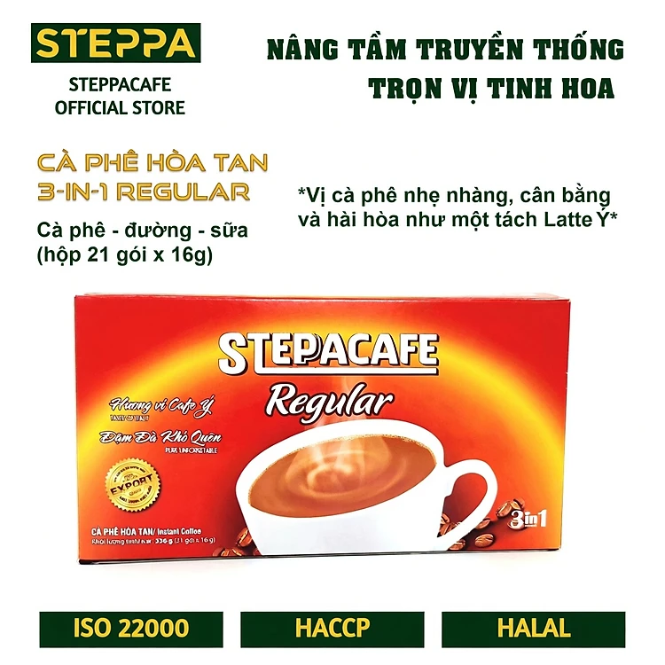 [STEPPA] CÀ PHÊ HÒA TAN 3-IN-1 REGULAR [Hộp 21 gói x 16g]