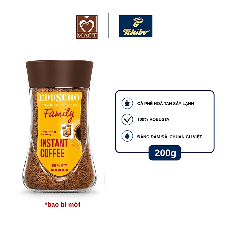 Cà phê hòa tan TCHIBO FAMILY - 100% Robusta - Vị đắng đậm đà - lọ 200g