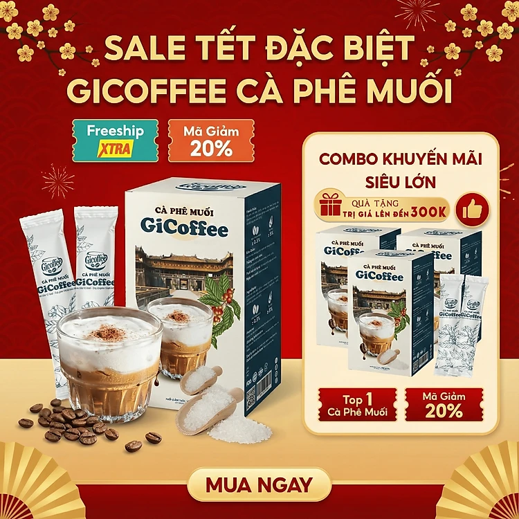 Cà Phê Muối Hòa Tan GiCoffee Chuẩn Vị Huế - Ít Ngọt (1 Hộp 10 gói x 16gr)