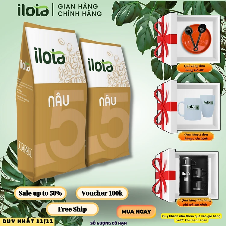 Cà Phê ILOTA 5 NÂU rang xay nguyên chất cafe ngon pha phin Coffee Nâu Sữa Đá gói 250gr