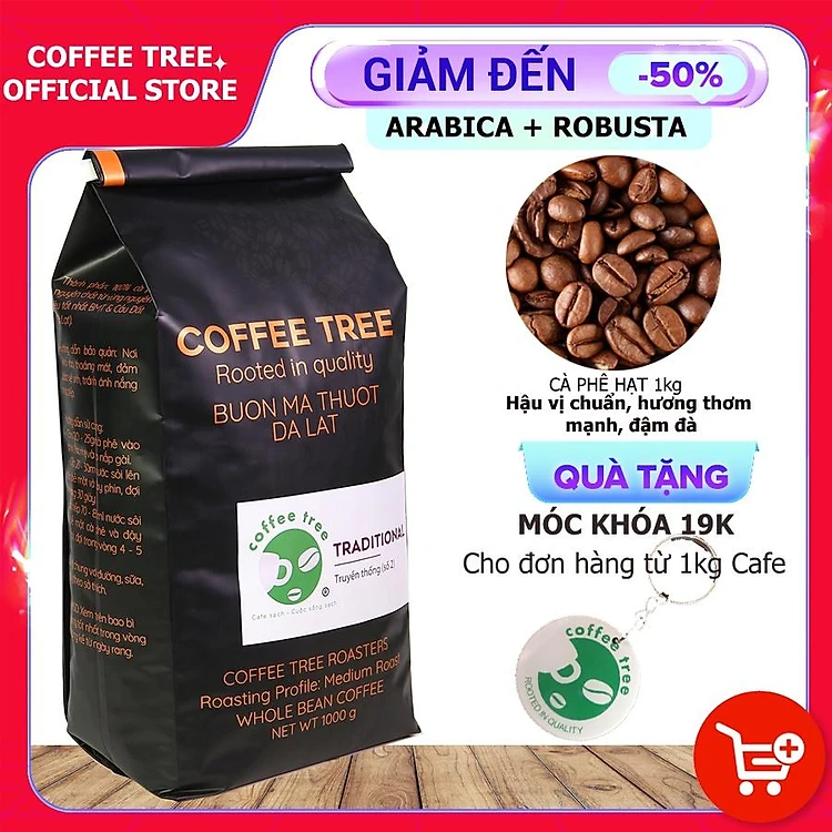 Cà Phê Nguyên Chất - Hạt - Truyền Thống Số 2 - Buôn Mê Thuột - 1Kg - Hương Thơm Mạnh – Vị Đắng Vừa – Hậu Vị Ngọt