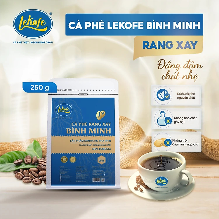 Cà phê rang xay Bình Minh Lekofe 100% Robusta Đắng đậm chát nhẹ Túi 250gram