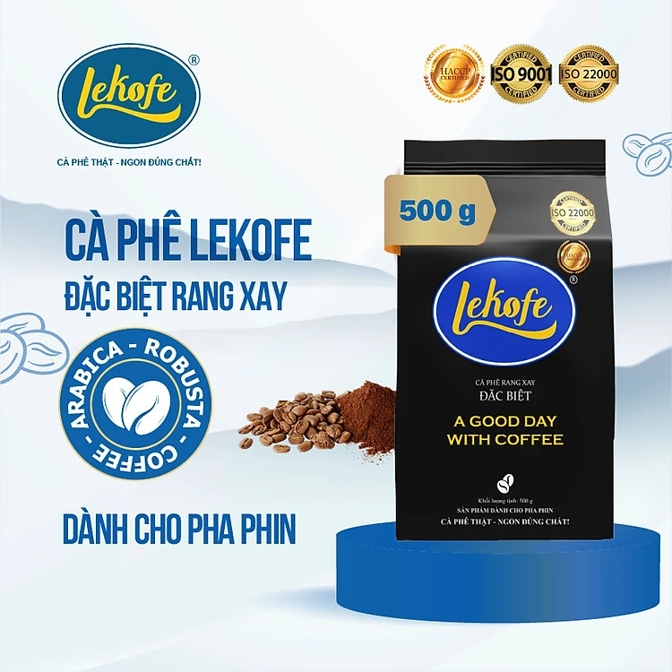 Cà phê rang xay Đặc Biệt Lekofe 80% Robusta 20% Arabica Đắng đậm chua nhẹ Túi 500gram