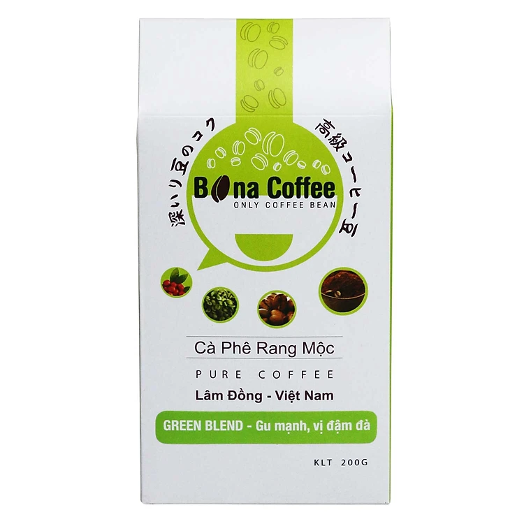 - Bona Coffee dòng Green Blend là thành quả của quá trình tìm tòi và nghiên cứu về “Một dòng cà phê sạch, đậm gu truyền thống Việt”.