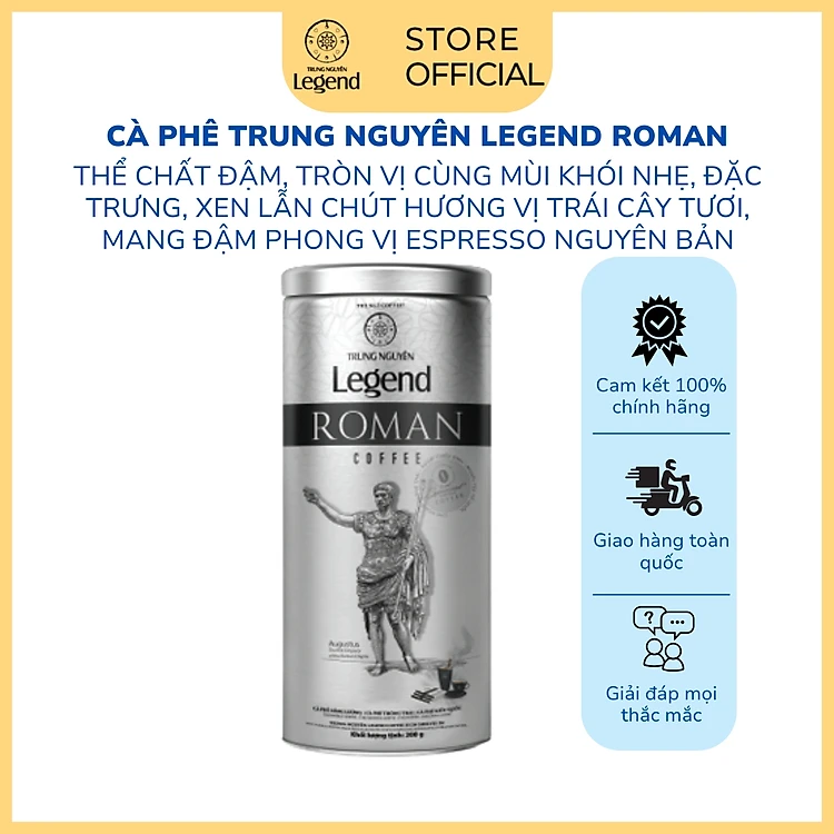 Cà Phê Rang Xay Trung Nguyên Legend Roman - Lon 200gr - Phong Cách Espresso Nguyên Bản, Đậm Đà, Hương Trái Cây Tươi