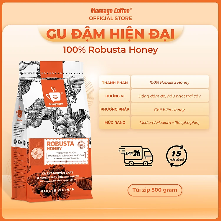 Cà phê Robusta Honey nguyên chất rang mộc cafe pha phin - pha máy vị đắng đầm, hậu ngọt và hương thơm nồng từ Message Coffee