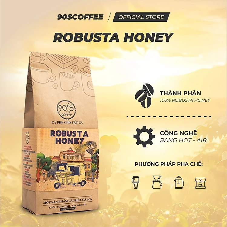 Cà Phê Robusta Honey Rang Xay Nguyên Chất - 90S Coffee Vietnam - 100% Cà Phê Sạch Cao Cấp