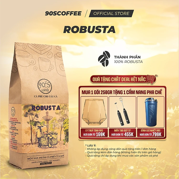 Cà Phê Robusta Nguyên Chất Rang Mộc - Gu Truyền Thống Đắng Đậm Thơm Nồng | 90S COFFEE