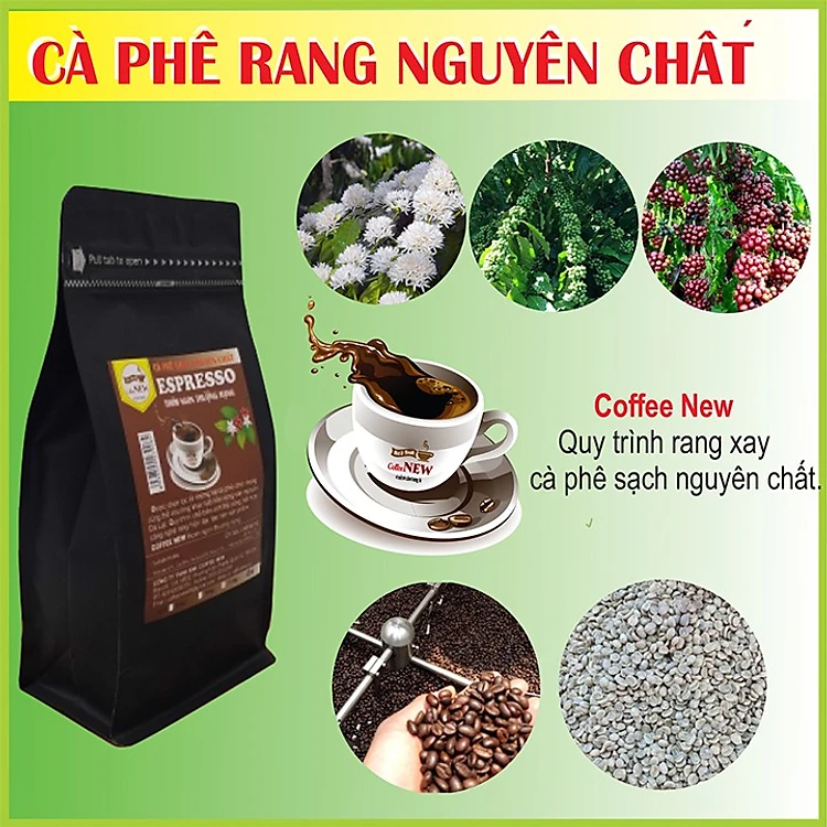 Cà Phê ESPRESSO - Trọng Lượng 200g, 500g, 1kg - Rang Mộc Nguyên Chất - Phù Hợp Pha Máy - Hương Thơm Hảo Hạng, Hậu Đậm, Vị Đắng Vừa - Coffee New