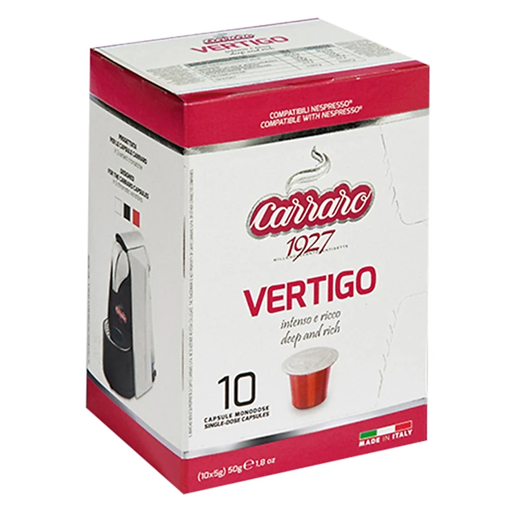 • Cà Phê Viên Nén Capsule Carraro Vertigo CCACVER (10 viên x 5.2g) mang đến cho bạn hương vị cà phê thơm ngon, béo ngậy đầy hấp dẫn mỗi khi sử dụng.