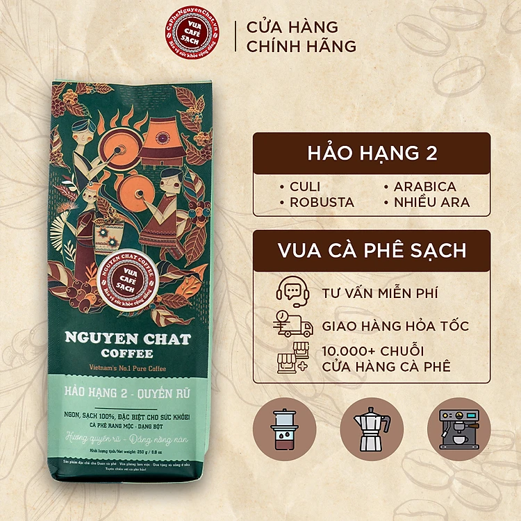 Cà phê xay nguyên chất HẢO HẠNG 2 Premium Coffee No. 2 phong cách Ý hương vị đậm đà, thơm nồng, hậu vị ngọt - 250g