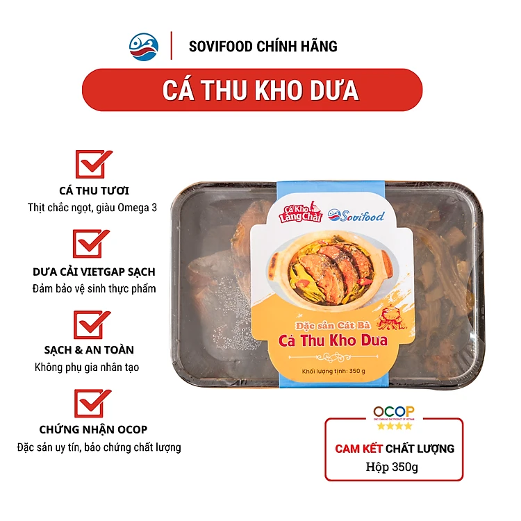 Cá Thu Kho Dưa Sovifood Hải Phòng - Cá Thu Cát Bà Cải Chua VietGAP, Giàu Đạm, Omega 3 - 350G