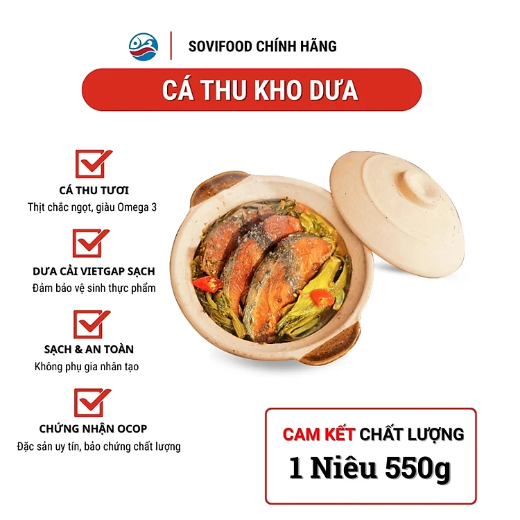 Cá Thu Kho Thố Đất Sovifood Hải Phòng - Giàu Đạm, Giàu Omega 3, Không Chất Bảo Quản Hóa Học - 550G