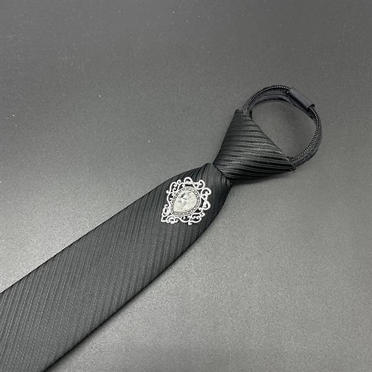 Cà vạt 6cm màu đen thắt sẵn kẻ đơn giản đính đá trắng sang trọng