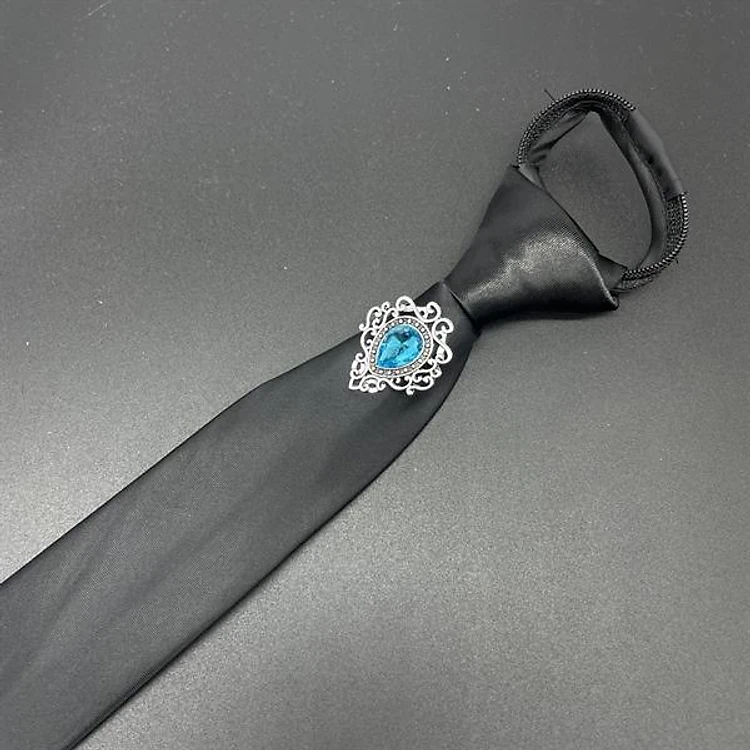 Cà vạt 6cm màu đen thắt sẵn phi bóng đính đá xanh sang trọng