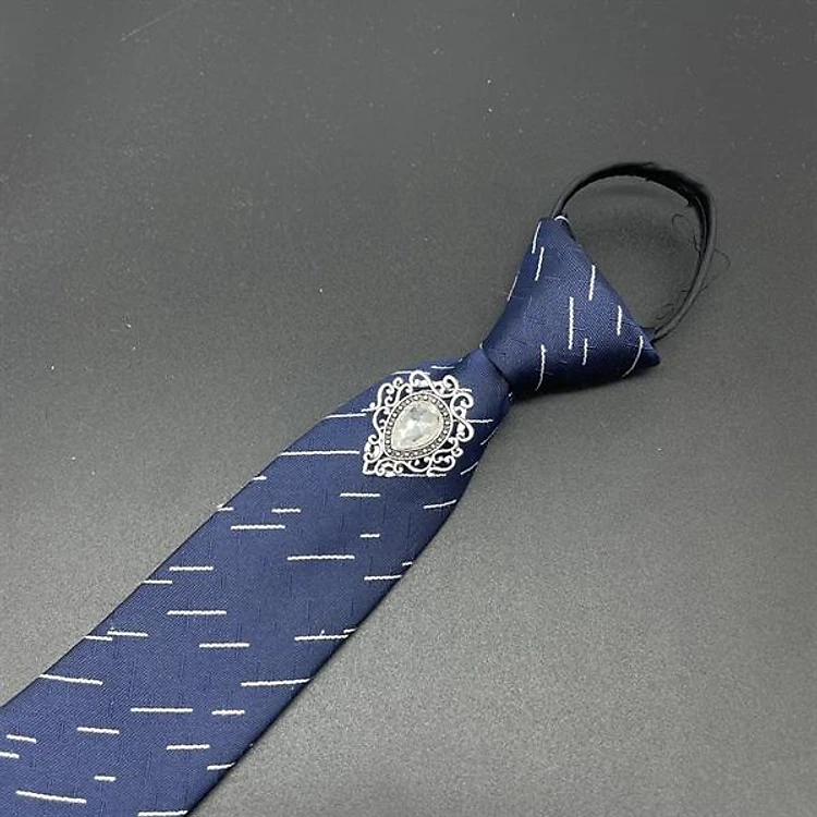 Cà vạt 6cm màu xanh đen thắt sẵn kẻ mưa đính đá trắng sang trọng
