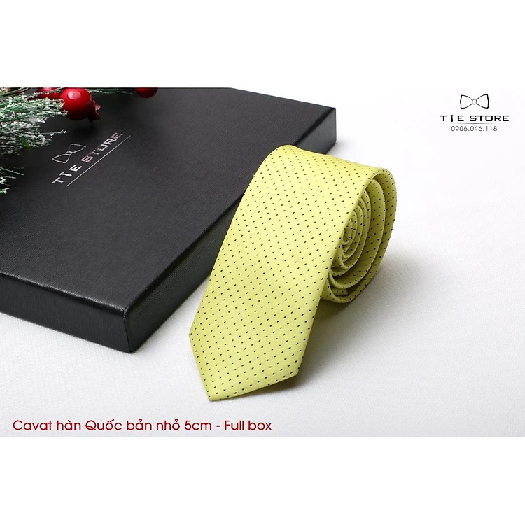 Cà Vạt Nam Bản nhỏ 5cm vàng nhạt chấm bi - Cavat Hàn Quốc Cao Cấp Full box