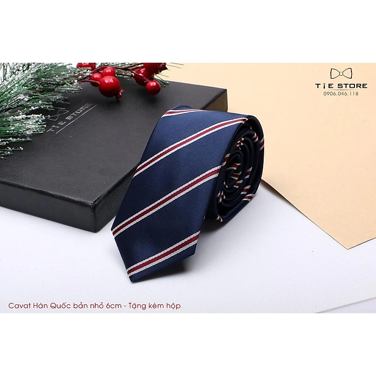 Cà Vạt Nam Bản nhỏ 6cm Xanh đen kẻ - Cavat Hàn Quốc Cao Cấp Full box