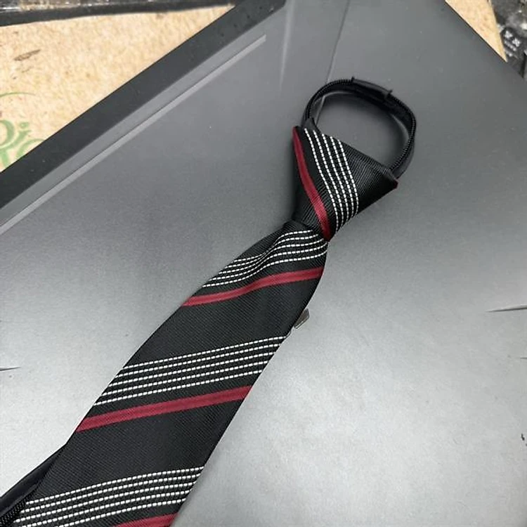 Cà vạt nam mẫu thắt sẵn dây kéo bản nhỏ 6cm mẫu đen kẻ đỏ chấm trắng