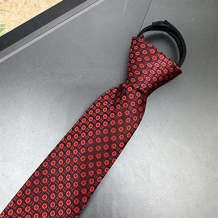 Cà vạt nam mẫu thắt sẵn dây kéo bản nhỏ 6cm màu đỏ đô chấm tròn