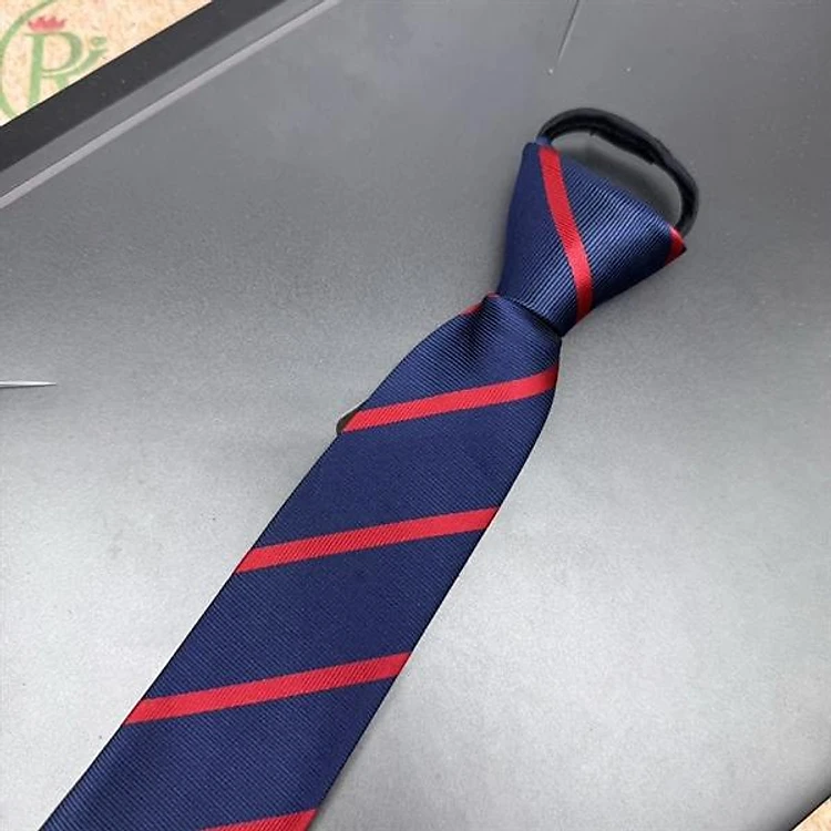 Cà vạt nam mẫu thắt sẵn dây kéo bản nhỏ 6cm mẫu xanh đen kẻ đỏ