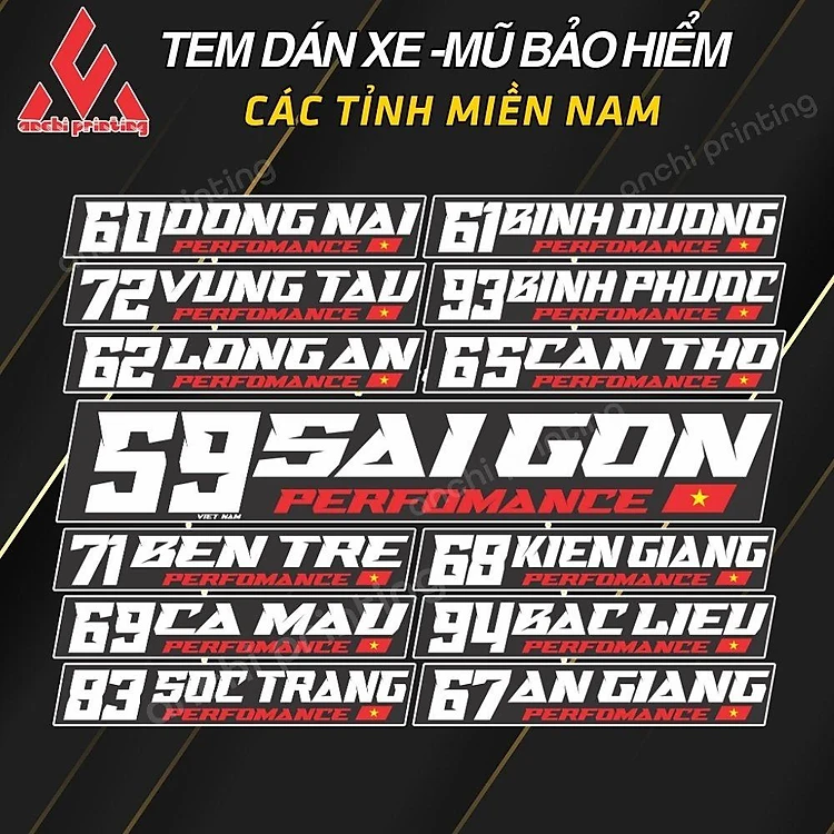 Tem dán xe, sticker dán xe 63 tỉnh thành Việt Nam siêu Hot, Decal cao cấp, bền màu, cắt sẵn - ANCHI PRINTING