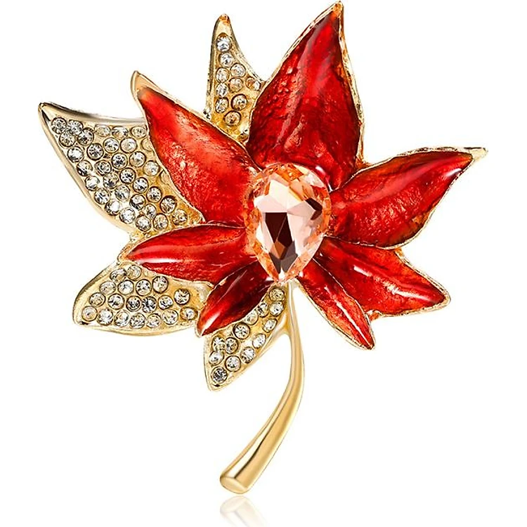 Cài áo Lá phong đỏ pha lê lấy ý tưởng từ hình tượng thực tế, các nhà chế tác mang hết tận tâm, nhiệt huyết để thổi hồn vào sản phẩm, khắc họa nên một chiếc cài áo tinh xảo, duyên dáng, ấn tượng.