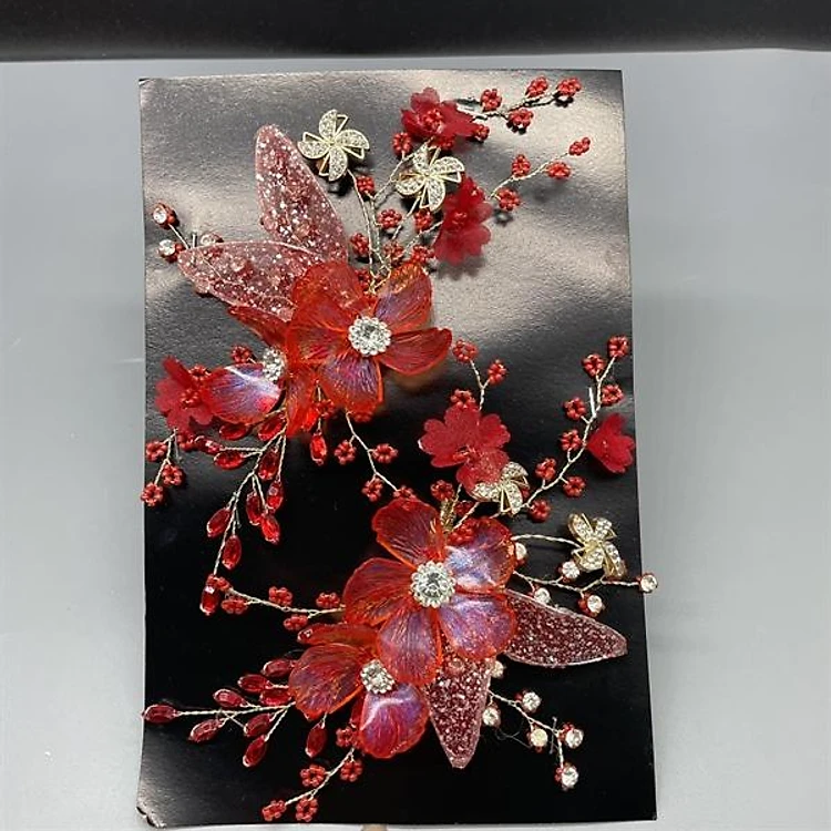 Cài tóc cô dâu hoa đỏ kết hạt cườm mẫu mới t8/2024