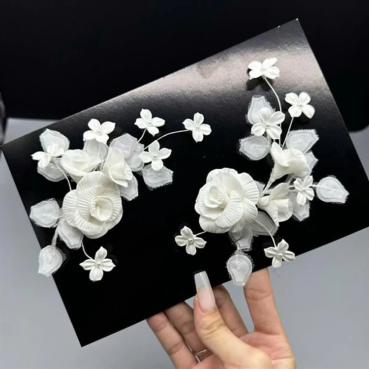 Cài tóc cô dâu hoa hồng đất sét trắng đính lá mẫu mới t9/2024