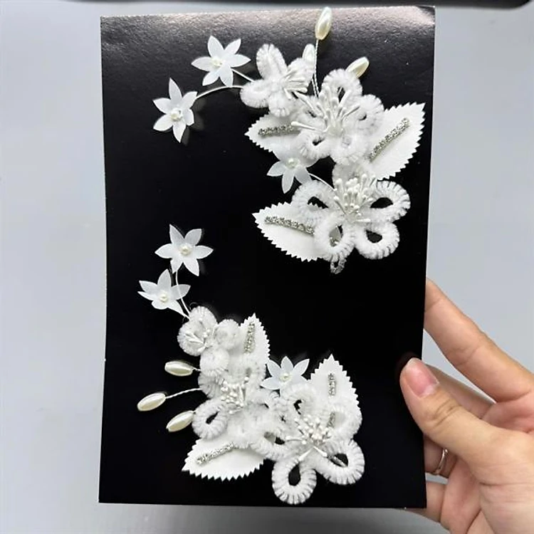 Cài tóc cô dâu hoa kẽm nhung trắng đính lá mẫu mới