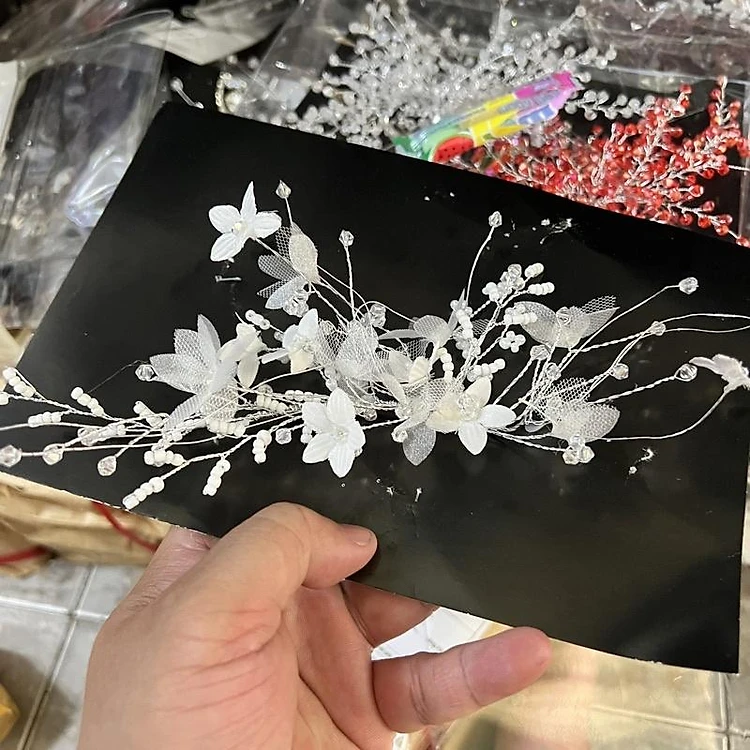 Cài tóc cô dâu hoa voan đính hạt - bướm trắng nhỏ