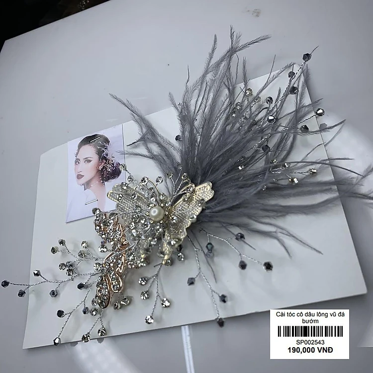 Cài tóc cô dâu ốp cài tóc cô dâu lông vũ bướm xi mạ đính hạt trai mẫu 2019
