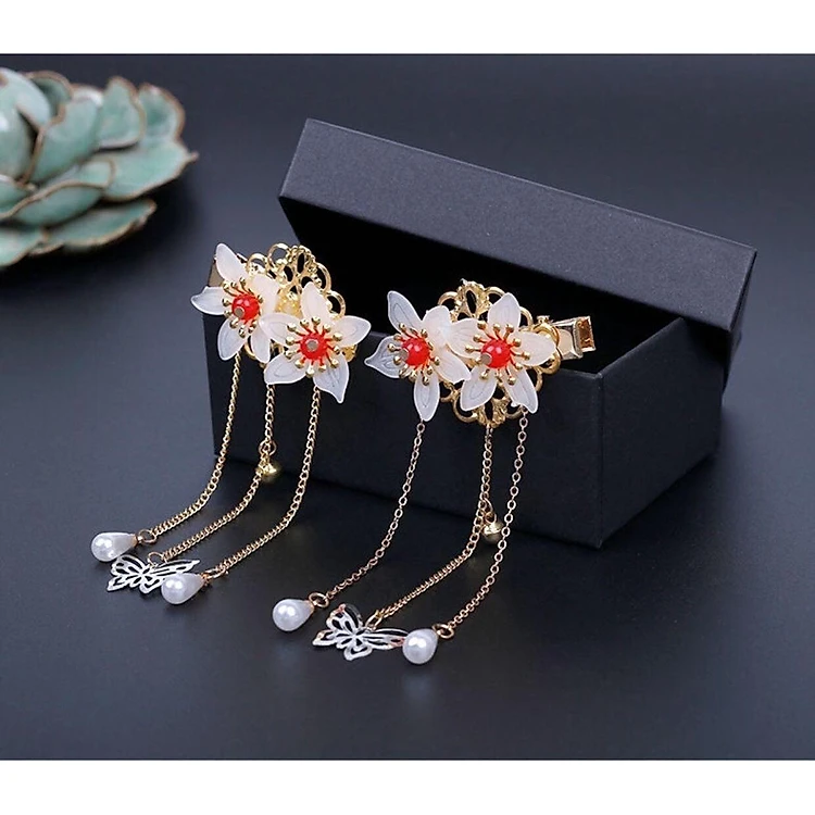 Cài tóc cổ trang nữ hoa nhị đỏ thả điệp lục lạc phong cách Trung Quốc tặng ảnh thiết kế Vcone ( 1 chiếc)