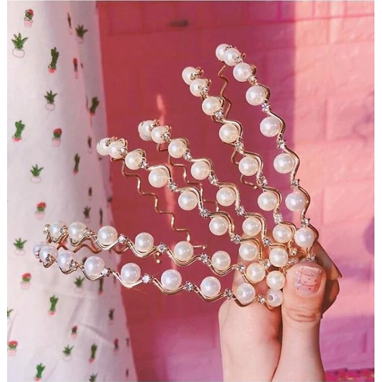 Cài tóc hạt châu gợn sóng - phụ kiện tóc nữ style Hàn Quốc