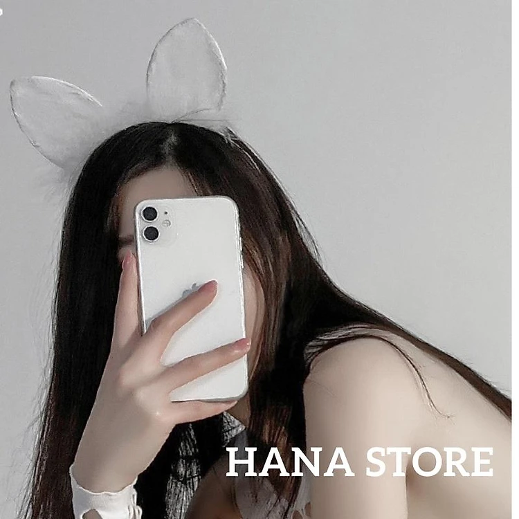 Cài tóc tai thỏ ren kết hợp lông vũ, phụ kiện cospaly sexy và quyến rũ