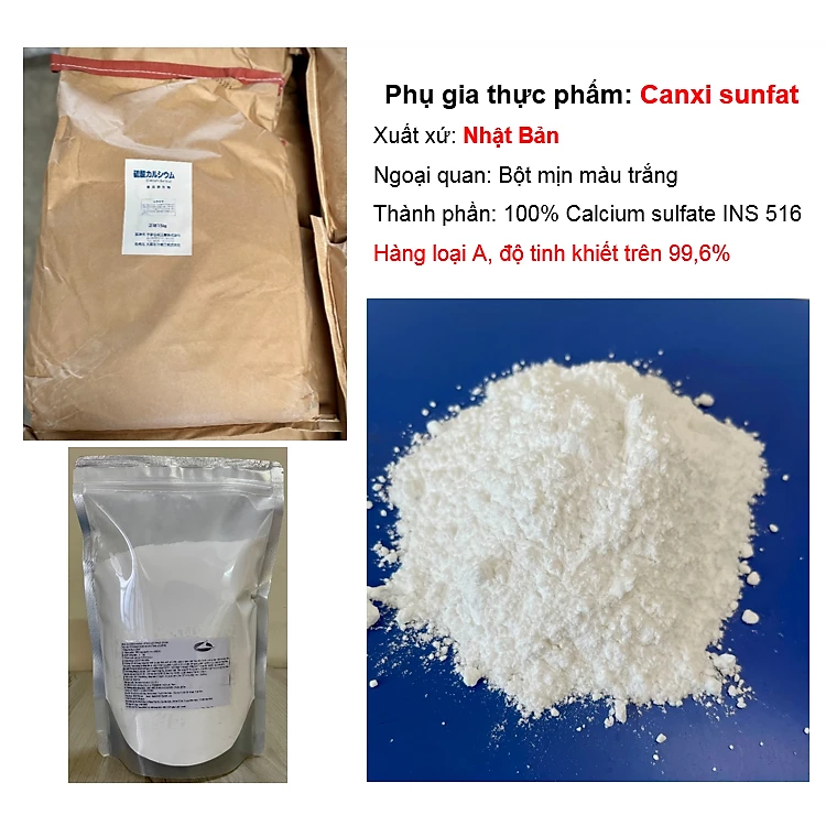 Calcium sulfate Nhật Bản thạch cao tinh khiết 99% dùng trong thực phẩm 1kg