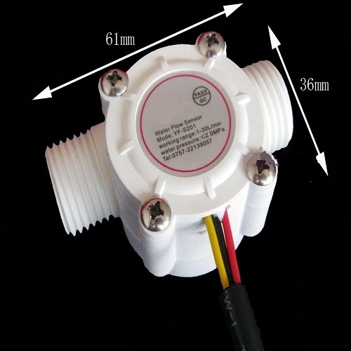 Cảm biến lưu lượng s201 – cảm biến Hall là cảm biến lưu lượng nước thường dùng trong các máy bơm nước hồ cá, máy bơm mini, máy nước nó…. Cảm biến hoạt động dựa tên cánh quạt nước và cảm biến Hall bên trong, khi nước chảy qua làm quạt nước quay ==> cảm biến Hall ==> xung vuông ( từ NPN).