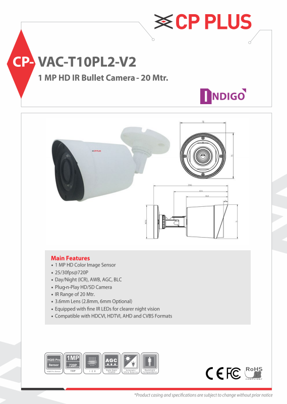 1 MP HD IR Bullet Camera - 20 Mtr.