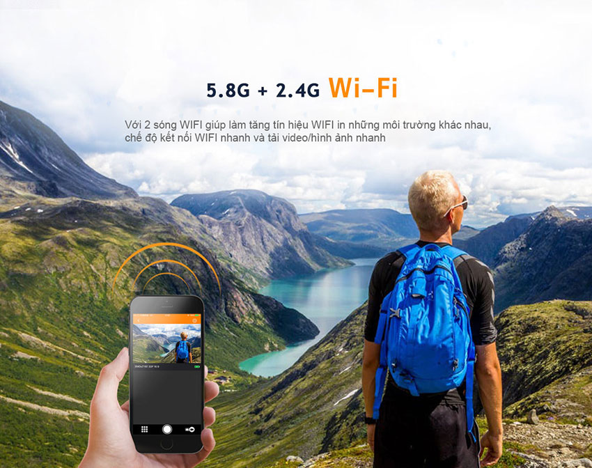 Bên cạnh đó 2 sóng Wifi 5.8G và 2.4G giúp tăng tín hiệu wifi trong nhiều môi trường khác nhau giúp bạn có thể tải video, hình ảnh nhanh nhất.