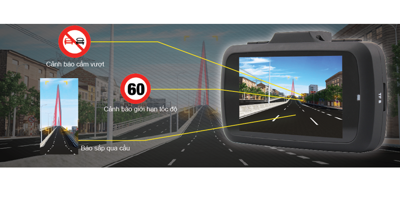 VietMap K9 Pro được tích hợp hệ thống cảnh báo làn đường, khi xe chạy lệch làn đường đang di chuyển, camera lập tức sẽ cảnh báo bằng giọng nói nhắc nhở tài xế để lái xe an toàn hơn