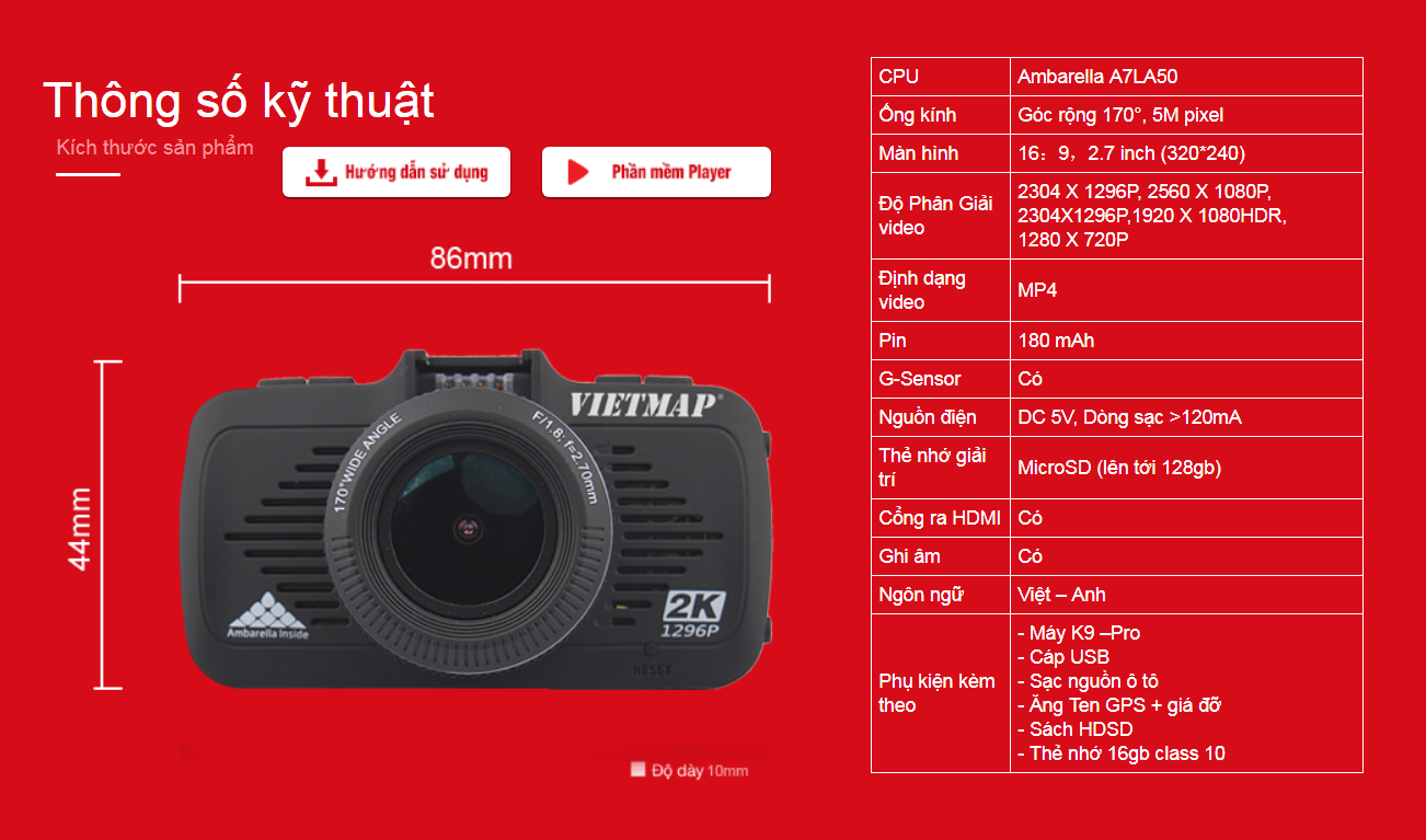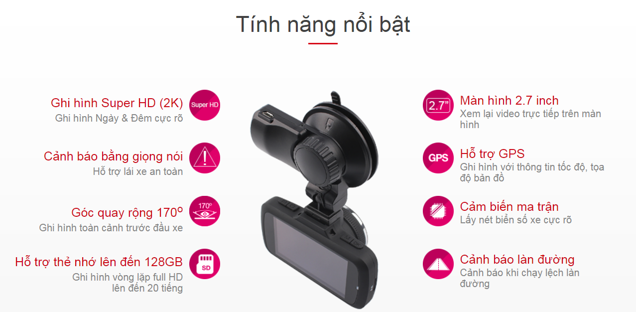 Chip xử lý hình ảnh cao cấp Ambarella giúp ghi hình sắc nét với độ phân giải cao 2K 2560 x 1080. Cảm biến ma trận OV4689 ghi hình cực rõ ban ngày, ban đêm và lấy nét biển số xe. Có thể coi lại các video đã ghi hình trực tiếp trên màn hình thiết bị.