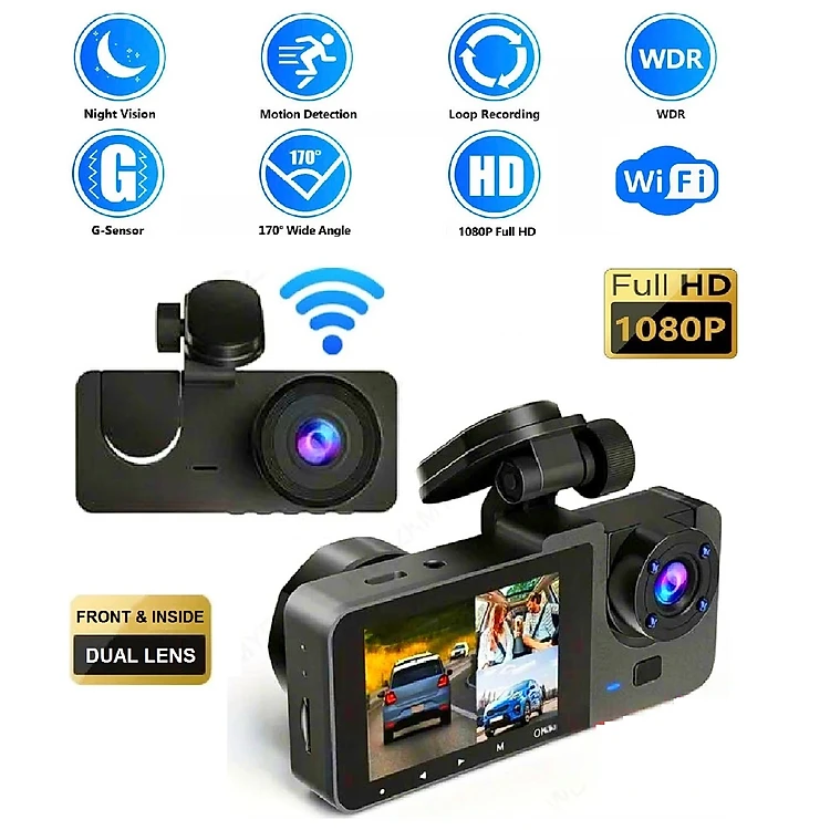 Camera Hành Trình Wifi 2 Mắt Màn Hình IPS 2.0 FHD 1080P 12MP 30fps IR/Mic Quay Chụp Rõ Nét Kết Nối Android/iOS
