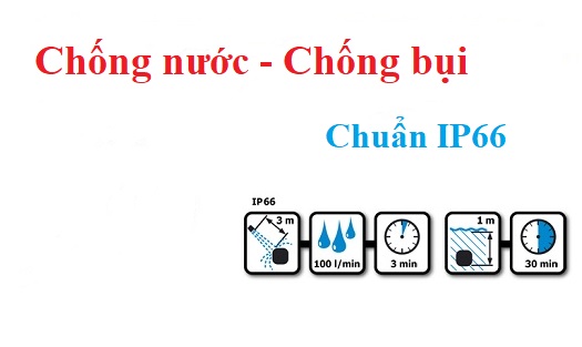 Với chuẩn IP66, sản phẩm hoàn toàn có khả năng chống thấm nước, bụi tối đa, cho người dùng thoải mái sử dụng, lắp đặt ngoài trời không ngại mưa, nắng gây hư hỏng sản phẩm.