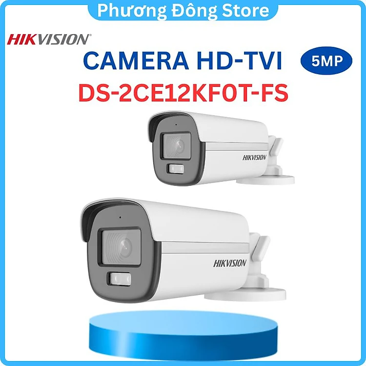Camera HDTVI có màu ban đêm 5MP HIKVISION DS-2CE12KF0T-FS, Có màu đêm 3K 5MP, Đèn 40M, Tích hợp Mic chống nhiễu - Hàng chính hãng