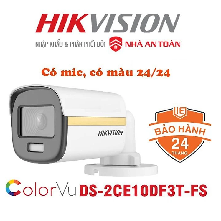 Camera HDTVI Thân ColorVu có mic 2MP HIKVISION DS-2CE12DF3T-FS chính hãng Nhà An Toàn