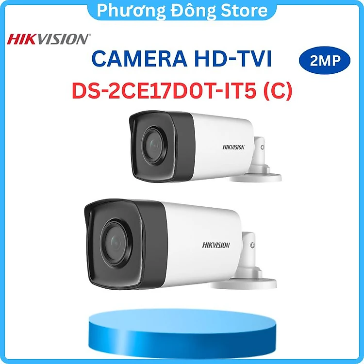 Camera Hikvision HD-TVI 4 trong 1 DS-2CE17D0T-IT5 ( C ), Phân giải 2MP, Hồng ngoại đến 80m, Tích hợp Micro - Hàng chính hãng