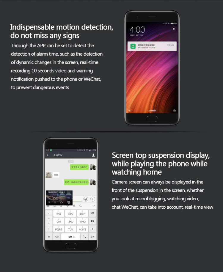 Cũng giống như bất cứ sản phẩm nào của Xiaomi, camera thông minh Xiaomi phải được kết nối với ứng dụng Mi Home trên smartphone mới có thể sử dụng được. Mọi thao tác điều khiển, ghi hình, xem video trực tuyế đều hoạt động thông qua app Mi Home (người dùng có thể tải miễn phí trên kho ứng dụng của iOS và Android). Nhằm tối ưu hóa thời gian ghi hình, hãng đã cho phép camera thông minh Xiaomi sử dụng thẻ nhớ lên đến 64 GB, người dùng có thể thỏa sức ghi hình mà không cần lo lắng quá nhiều về việc gián đoạn do hết dung lượng bộ nhớ.