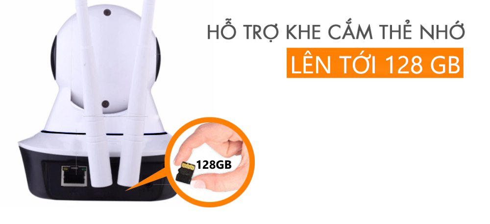 Khe cắm thẻ nhớ hỗ trợ lên đến 128GB giúp thời gian lưu trữ kéo dài gần hơn 1 tuần giúp bạn yên tâm hơn.