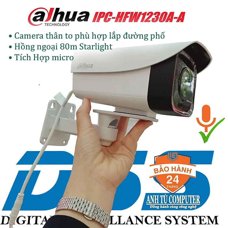 Camera IP POE 2MP hồng ngoại 80m có mic Dahua HFW1230A-A hàng chính hãng