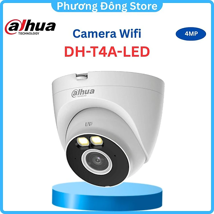 Camera IP Wifi Dome Full Color 4MP DAHUA DH-T4A-LED, Đàm thoại 2 chiều, Đèn LED 30m, Phát hiện chuyể - Hàng chính hãng